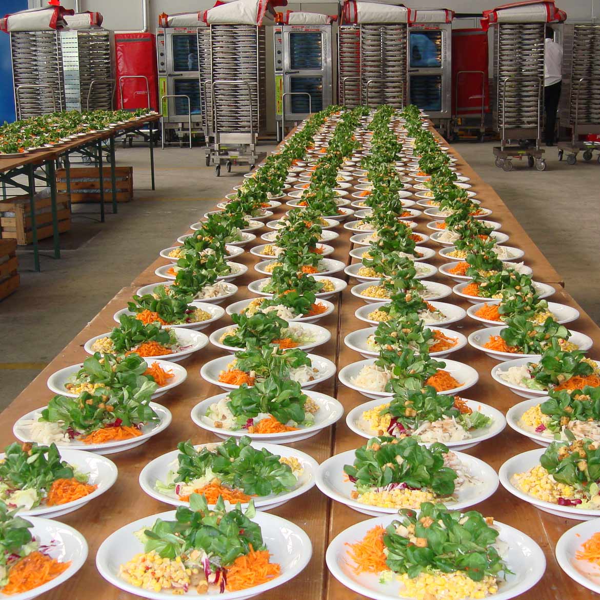Ob Tagungspauschalen mit Kaffee, Tee, Gebäck und Obst, hochwertigem Fingerfood für bis zu 900 Personen, oder festlichem 4 Gänge Menü für 500 Personen - wir organisieren alles nach Ihren Wünschen. Sie wollen gerne selber Hand anlegen? Kein Problem! Sprechen Sie uns an.